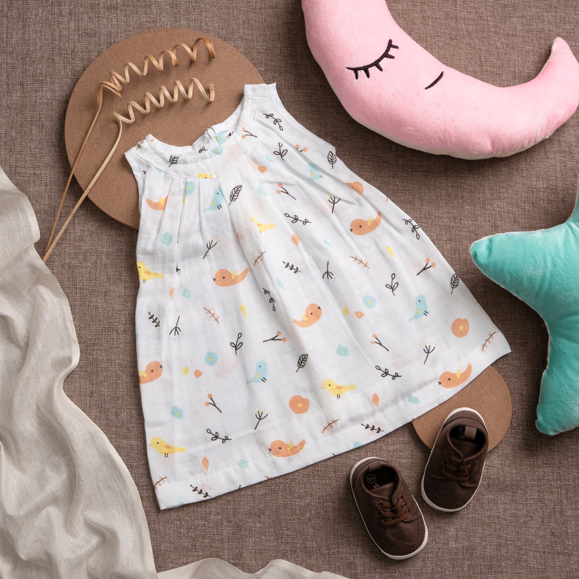 • Unparalleled Comfort: Crafted with ultra-soft, breathable organic muslin, this frock ensures your baby stays comfortable all day.